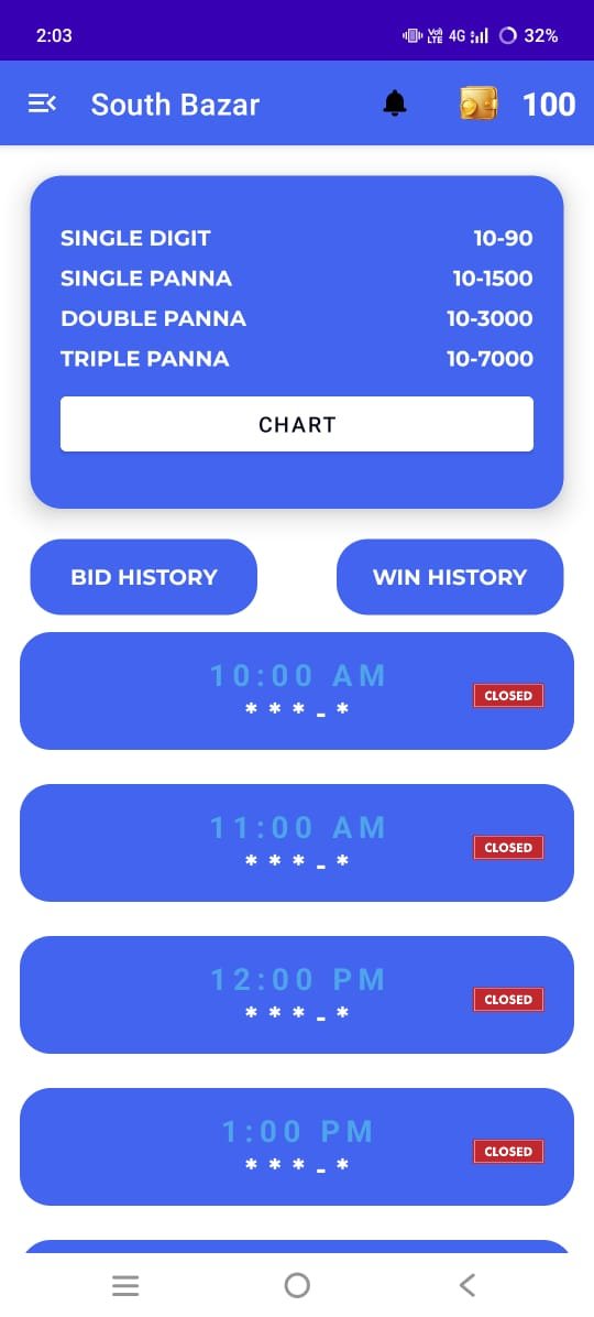 We are giving the best winning rate in current market rate. You can check Game game rates from "Game Rates" button available in South Bazar Game section.