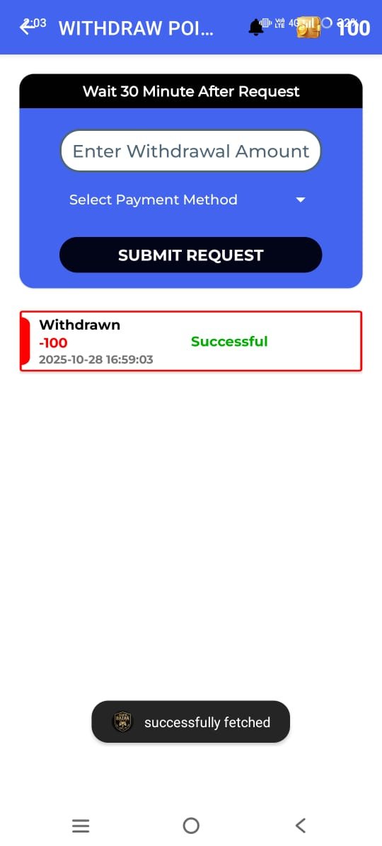 In wallet section, we have given option to add your withdraw methods. You can add PhonePe, Google Pay or PayTM and withdraw points from your wallet to any specified withdraw method.
